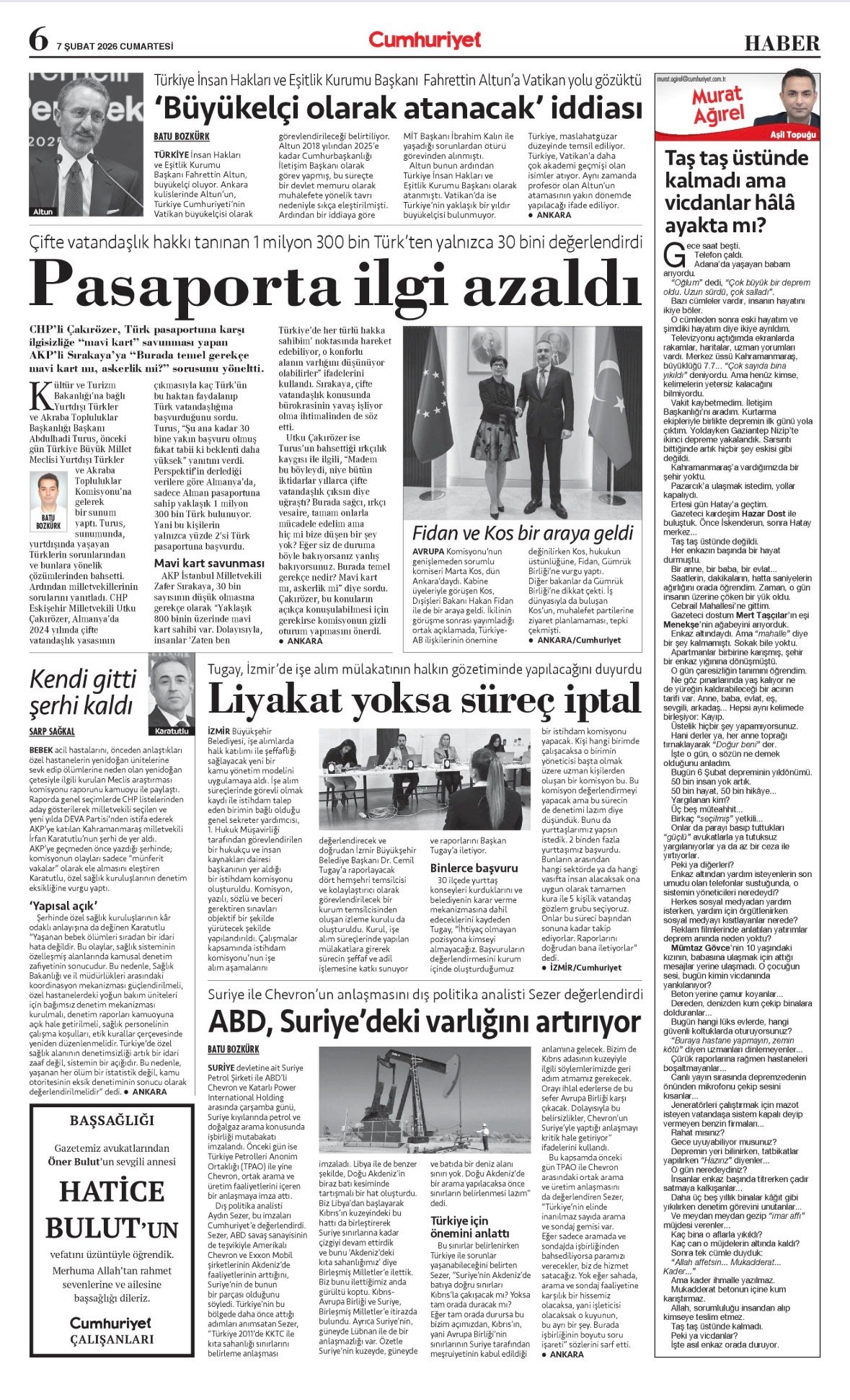 Cumhuriyet Bugünkü Vefat (Ölüm) – Başsağlığı – Anma – Teşekkür – Mevlit İlanları-7.2.2026