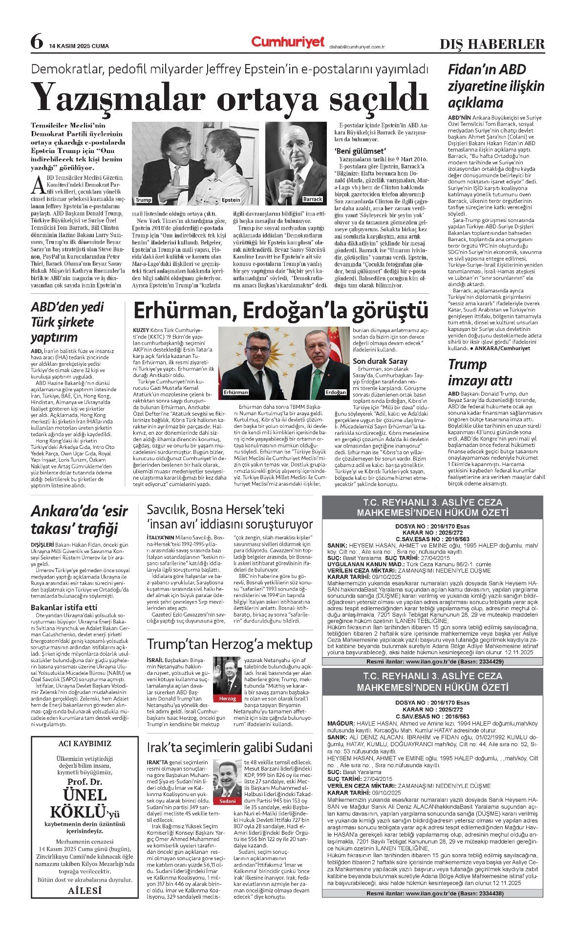 Bugünkü Cumhuriyet Vefat İlanları, Türkiye’de Bugün Vefat Edenler;
