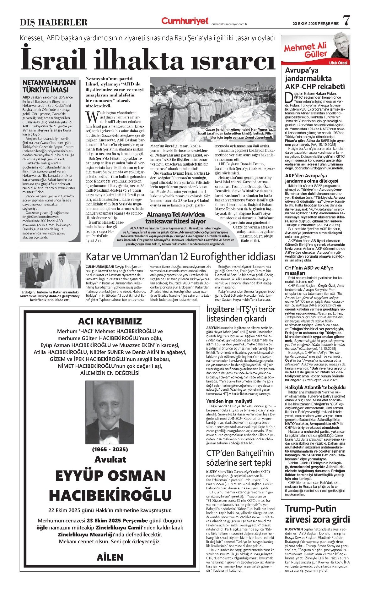 Cumhuriyet Bugünkü Vefat (Ölüm) – Başsağlığı – Anma – Teşekkür – Mevlit İlanları-23.10.2025